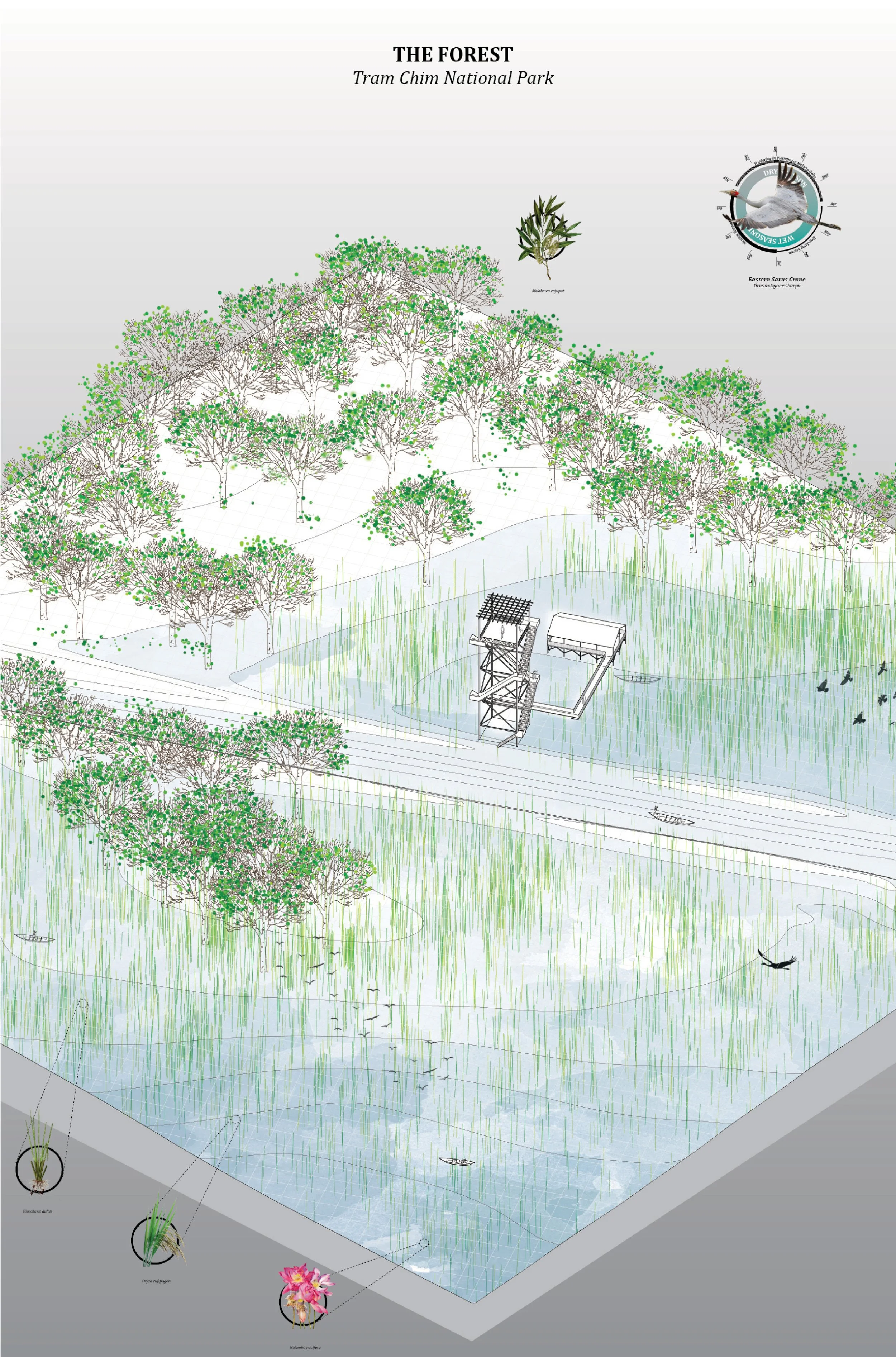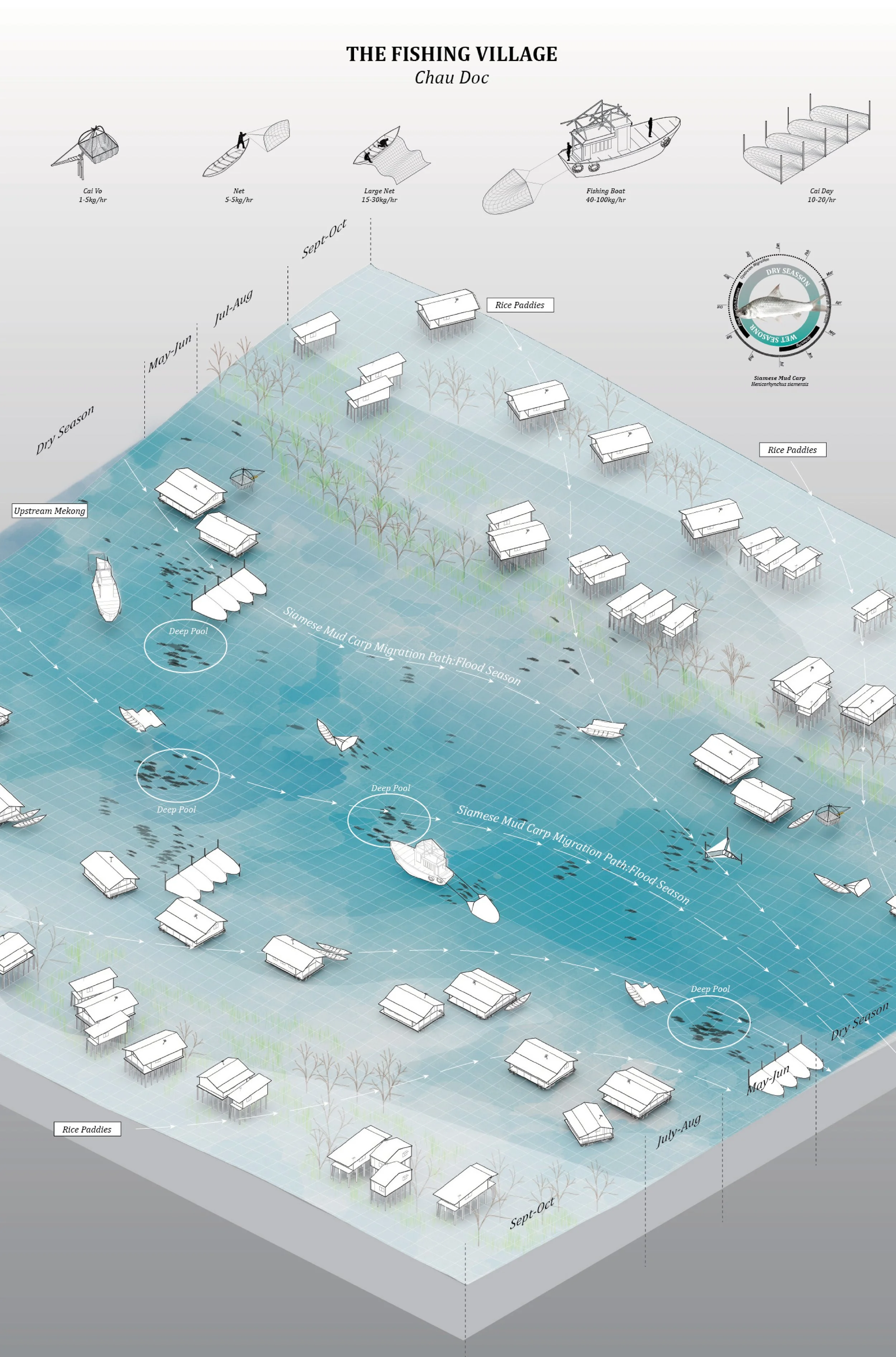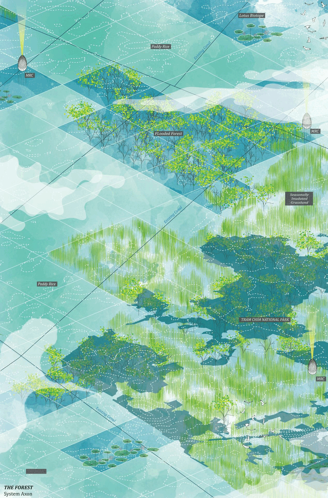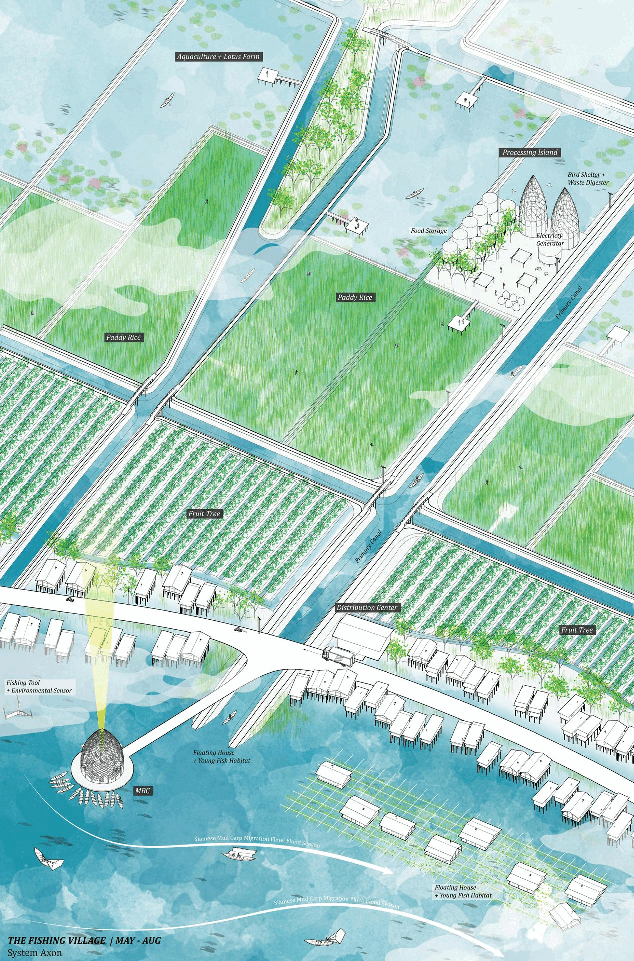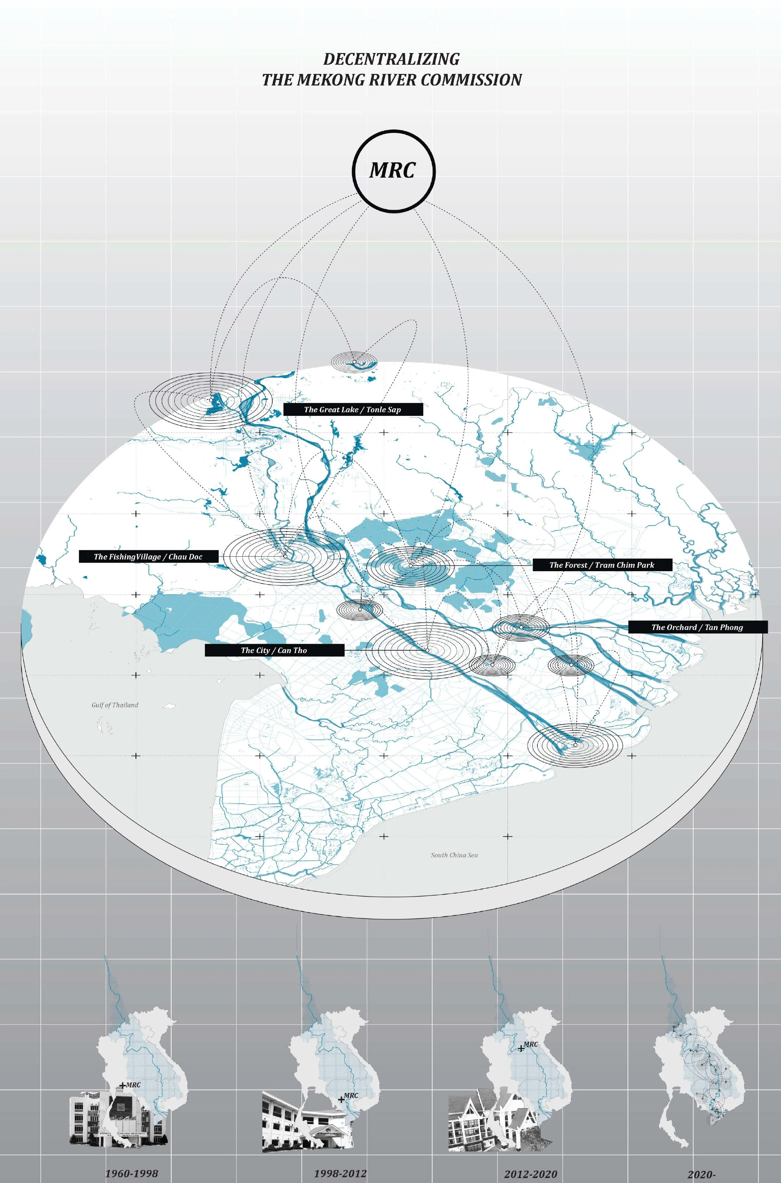 Asserting that the shaping and management of river landscapes is a political issue for which all sides must be heard, this reformulation of a water management institution seeks to create new operating principles for a world in which typically suppressed voices—from farmers, fishermen, and city-dwellers to plants, fish, and birds—can constitute new forms of collective power. The design recomposes the landscape’s established power structure and affirms the urgency of seeing the Mekong River not as an exploitable natural resource, but as a political being with a social and ethical conscience.